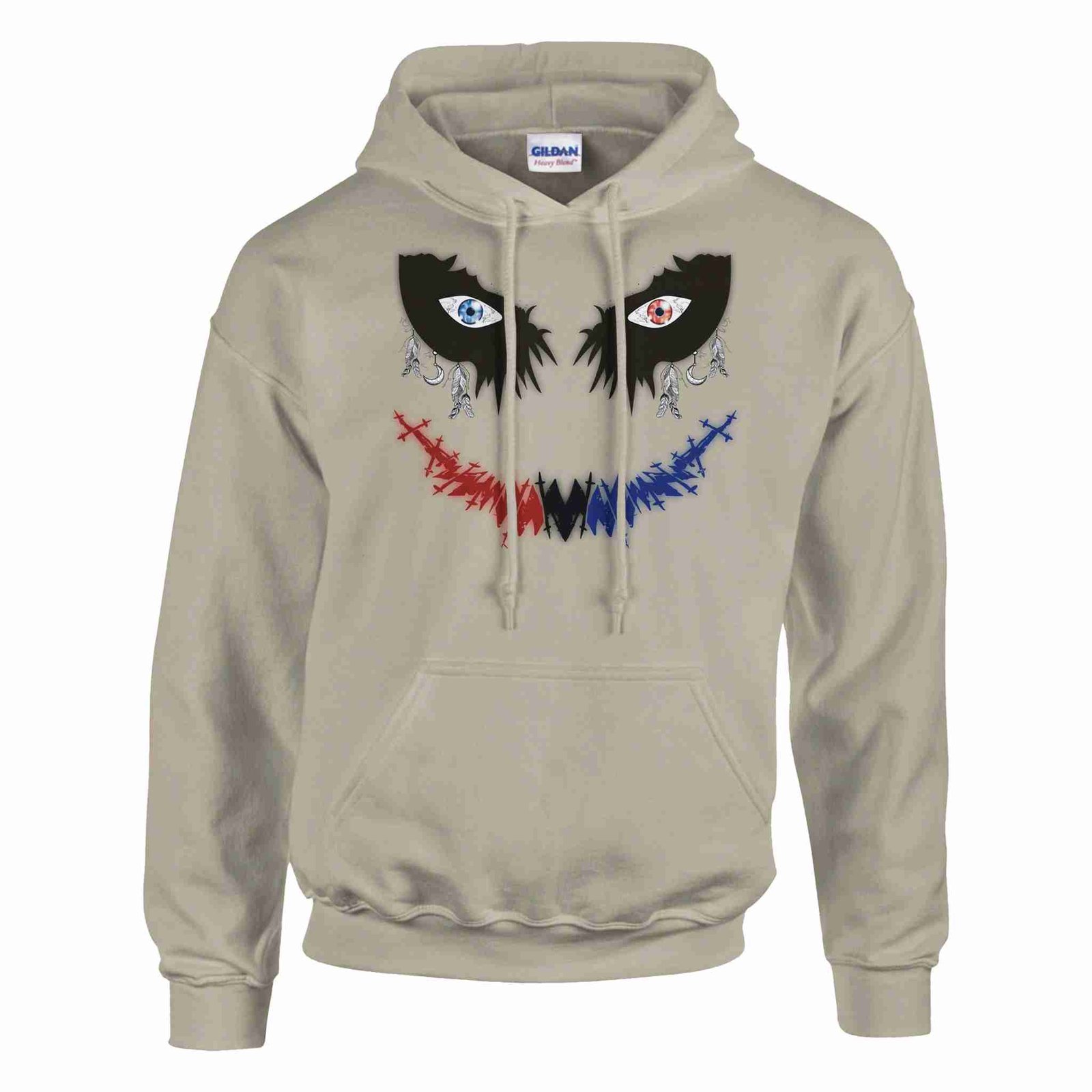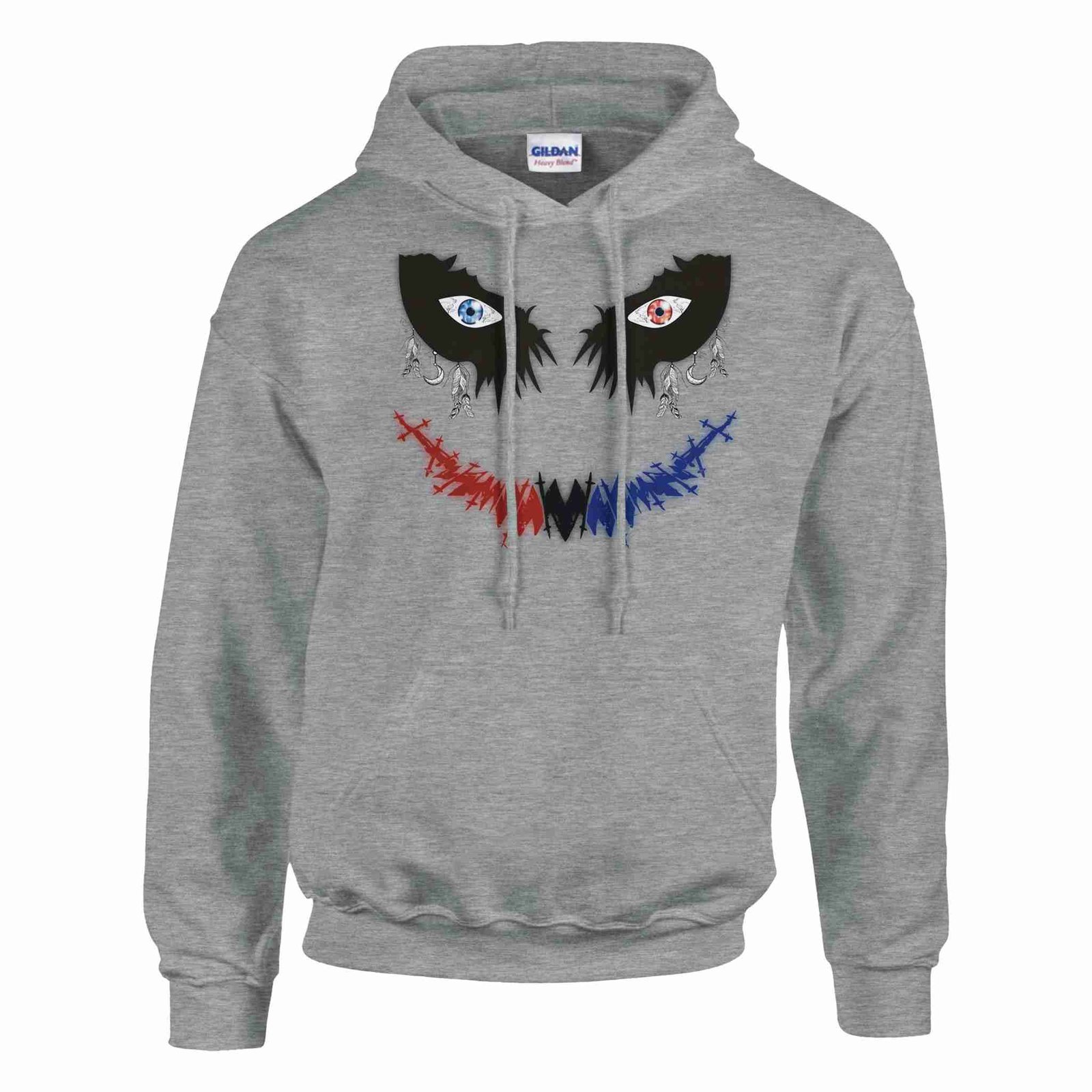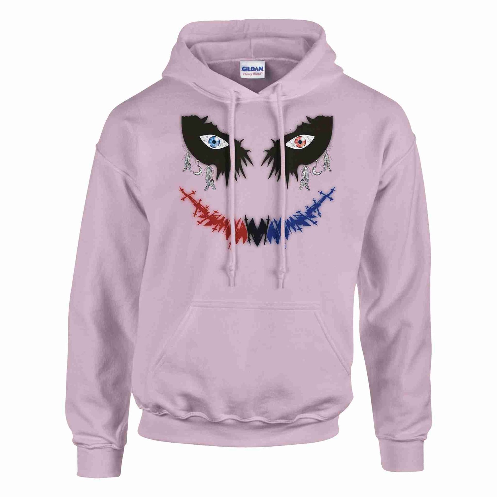 Wrap yourself in the lasting comfort of  The Safe Joker – Unisex Pullover Hoodie. This heavy-blend hoodie combines comfort and durability with a soft 50/50 cotton-polyester fabric. Double-lined hood with matching drawstring offers a classic look while air jet yarn provides a softer feel and minimizes pilling. Features a spacious front pouch pocket and ribbed cuffs and waistband with spandex for a secure fit.